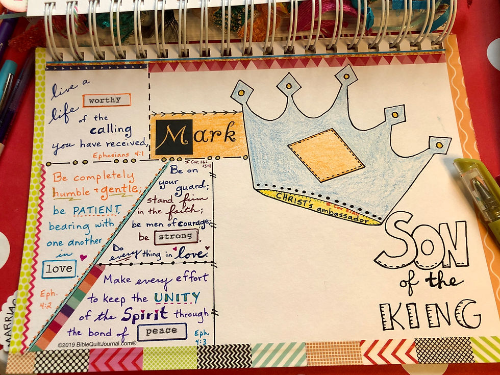 One of my sons is a senior this year and the pace has been relentless! It seems like there's a significant event every week, so recently I worked on a #biblequiltjournal page for him to help slow down to savor some of the special moments we're sharing and to focus my prayers over him in all the different activities he's involved in - - - that he continue to demonstrate the Godly characteristics blossoming in him.