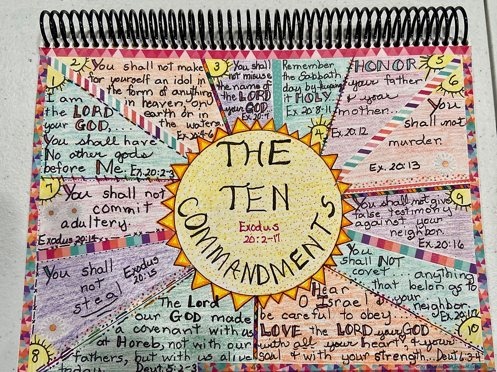 A neighbor friend used the Sunburst template for a page on the 10 Commandments. She divided some of the larger sections to create more individual spaces so that each Commandment was represented. She even had room to add some of the supporting verses to provide more context.