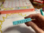 I had some remnants of a sticker sheet available, so I decided to stamp directly onto the sticker sheet to see how it looked. This helped me estimate the spacing of the phrase better and gave me the opportunity to try different colors of ink. Once I made this determination, I trimmed around the phrase and applied it to the template page.